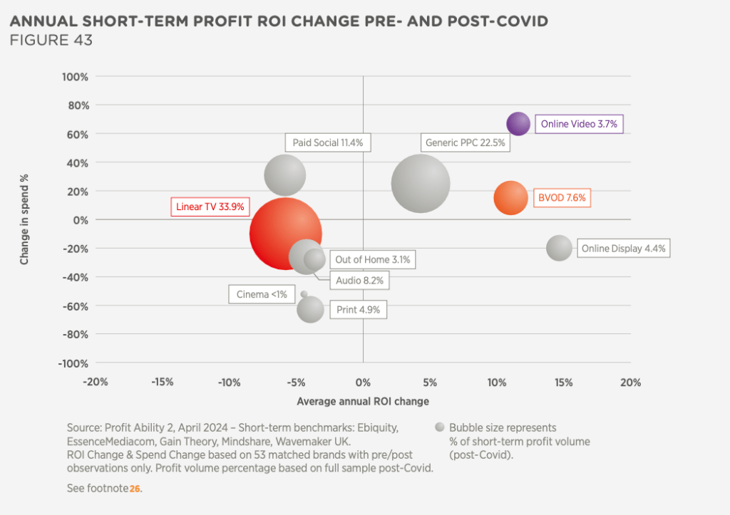 BVOD represents an increasingly valuable opportunity. Its ROI has increased by 10.7% since pre-COVID, and it now delivers above-average returns (£4.25 vs the all-media average of £4.11).